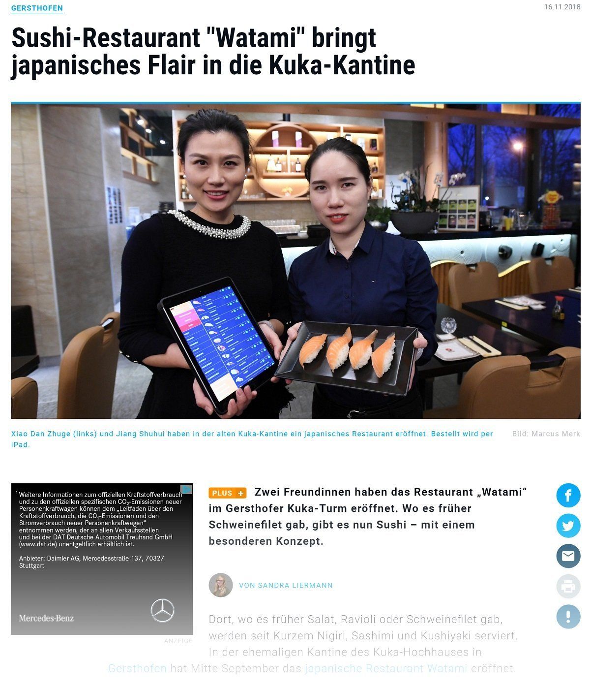 Lust auf authentisches Sushi, allerlei Grill Spezialitäten und keine Lust aufzustehen? Dann seid ihr bei uns richtig! All you can eat per IPad Touch Bestellung bequem am Tisch sitzend und warten bis essen zu Ihnen kommt, all das gibts bei uns Watami in Gersthofen am Hery-Park 3000.